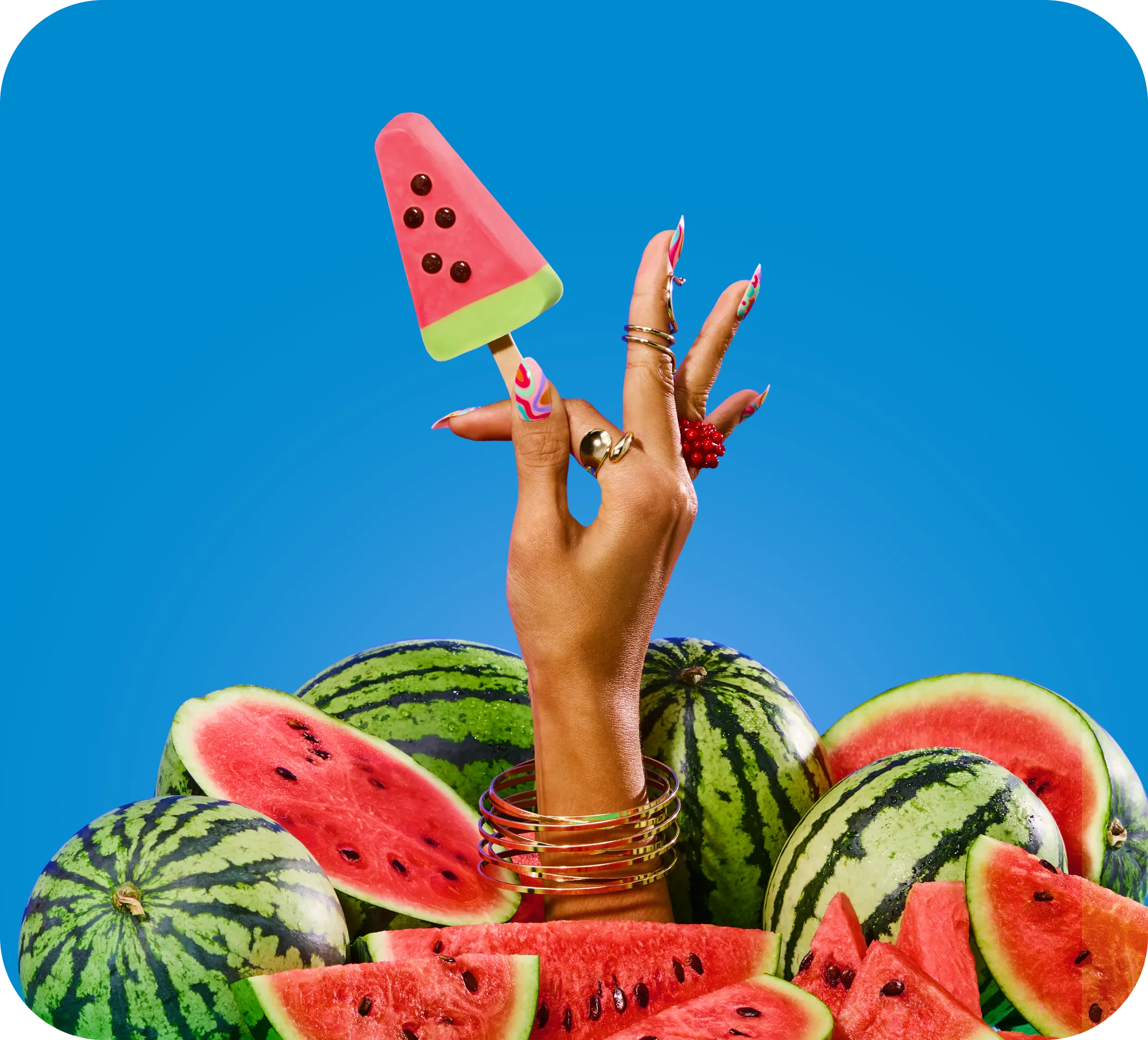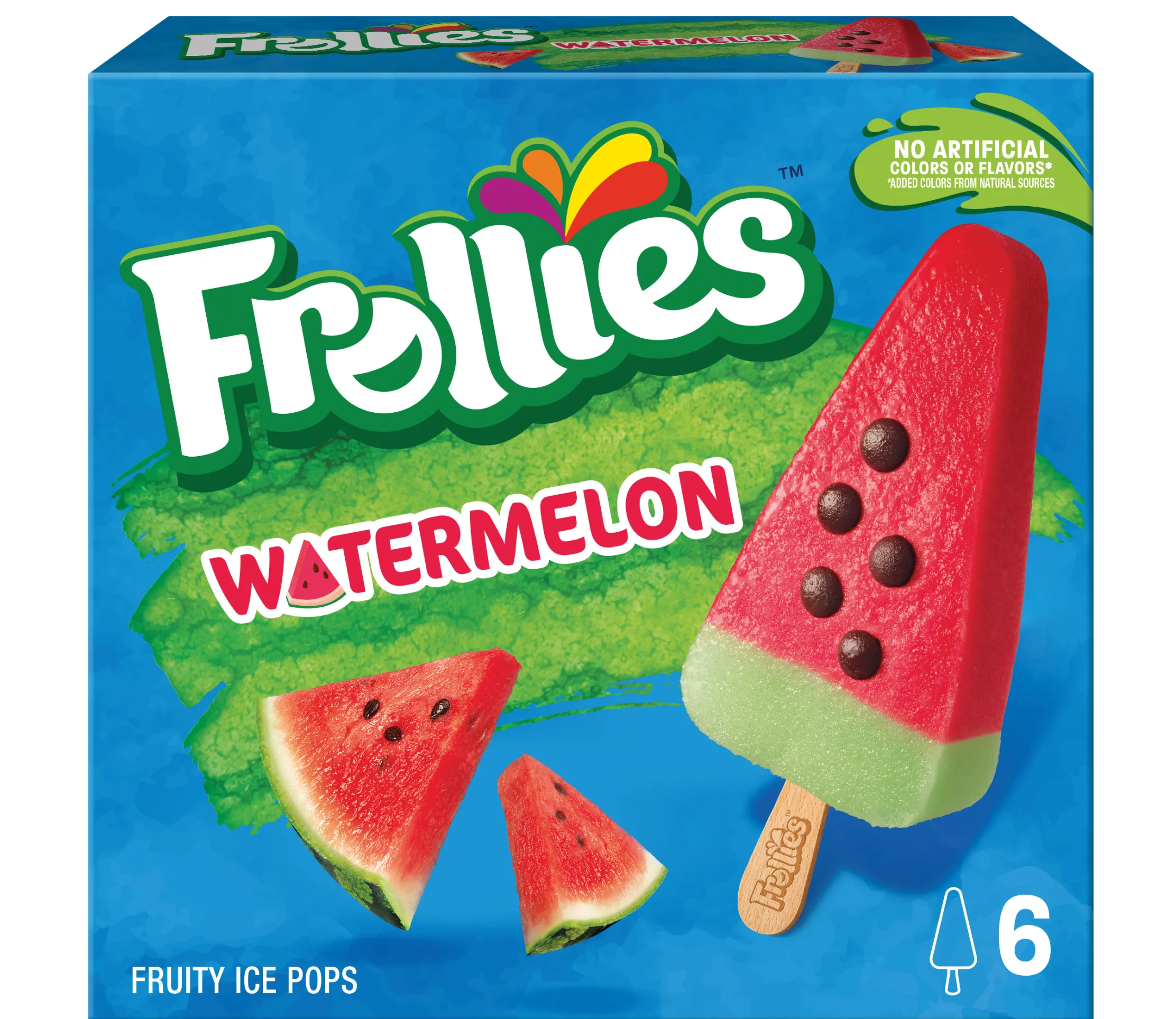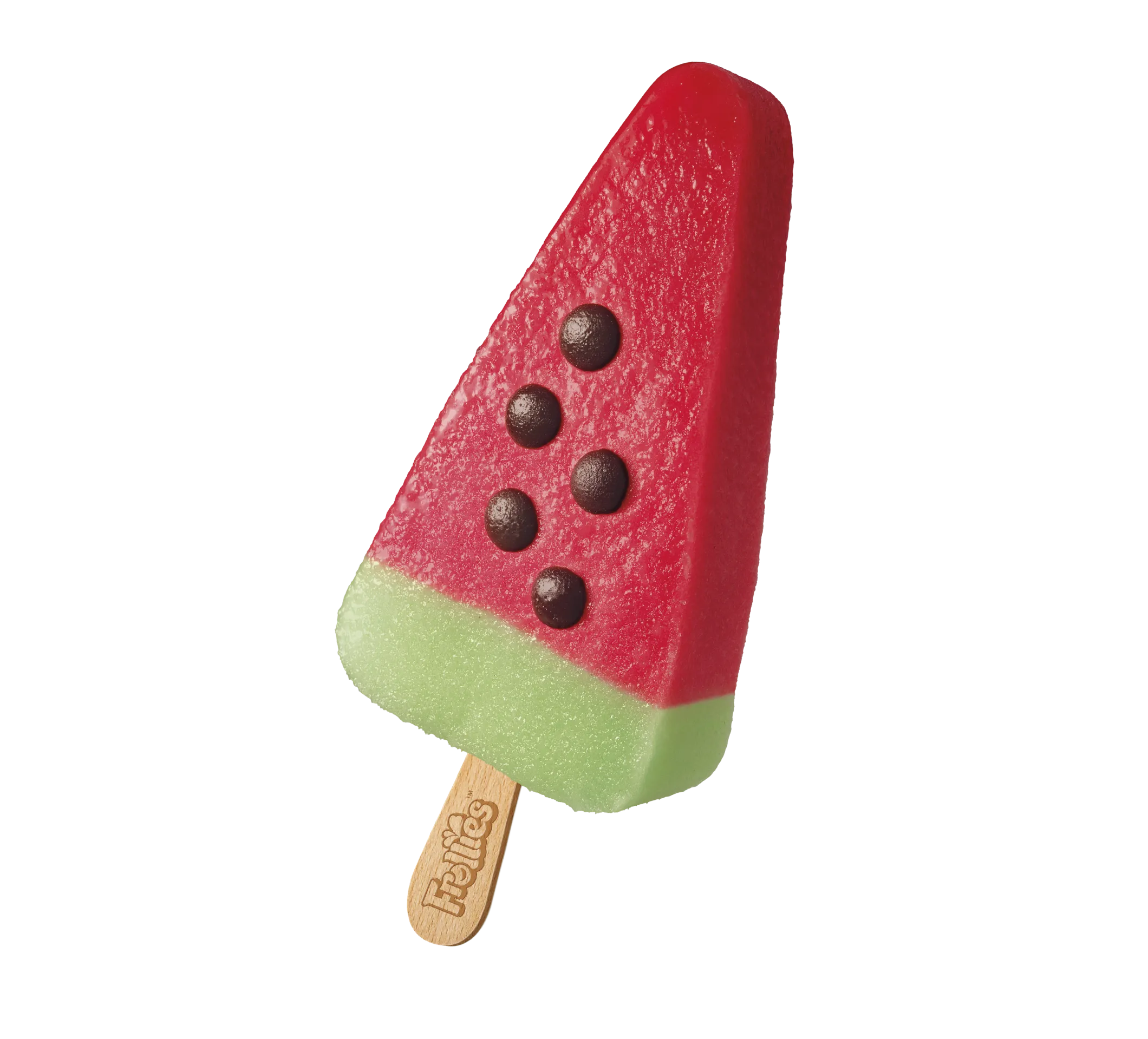 Refreshing watermelon and apple water ice, topped with chocolatey pieces
