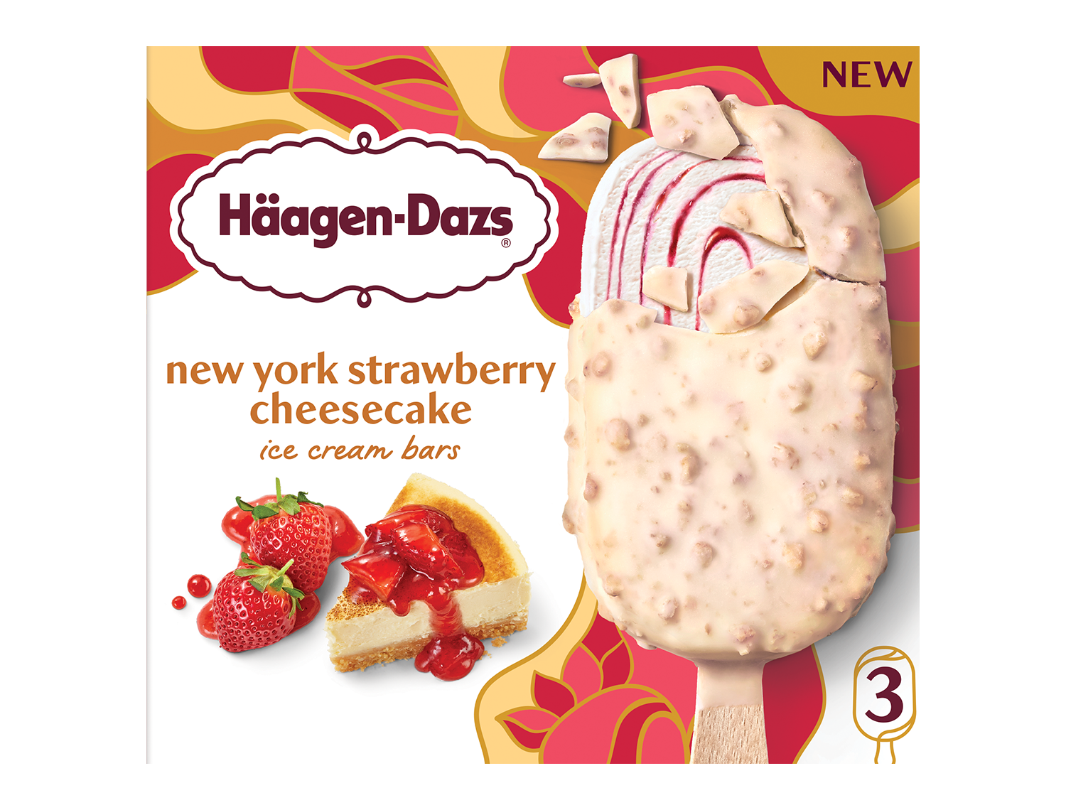 Velvety cheesecake ice cream swirled with strawberry sauce, covered in white chocolate with crunchy graham cracker crust pieces. Silky sweet with a touch of tart.