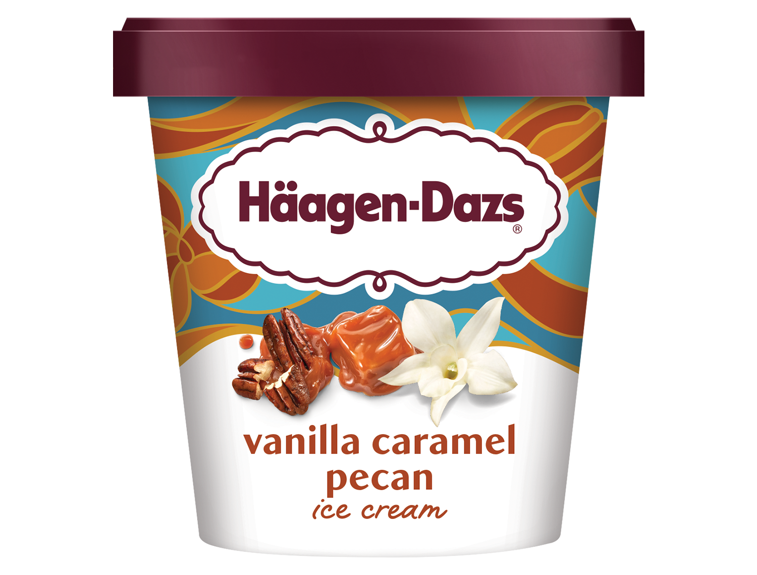 Our classic creamy vanilla ice cream paired with perfectly gooey caramel sauce, and caramelized toasted pecans. Pralines and cream redux.