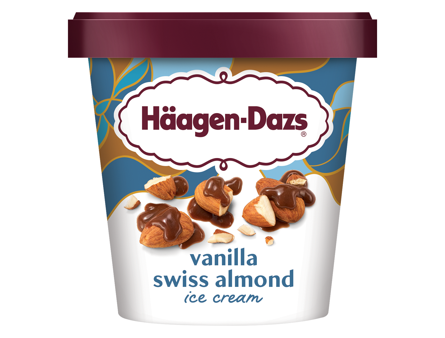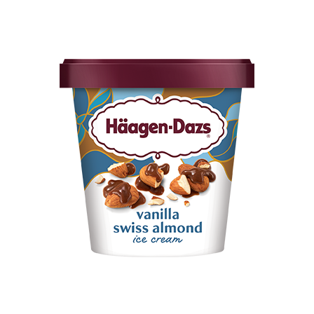 Chocolate-coated, roasted almonds paired with our distinctive vanilla ice cream. Creamy meets crunchy.