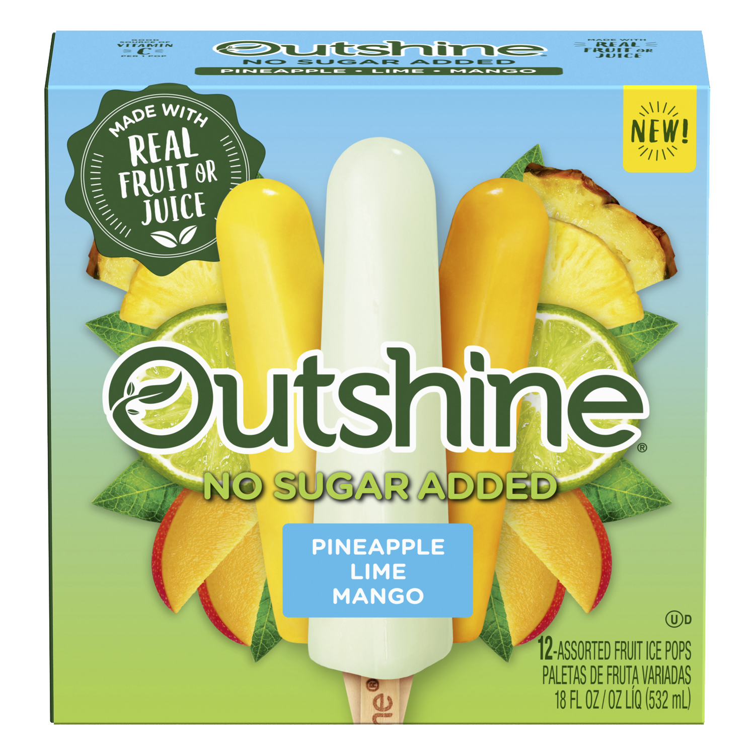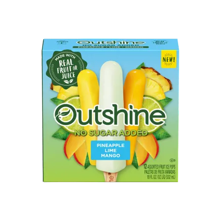 Every bite of an Outshine® No Sugar Added Fruit Bar tastes like biting into a piece of ripe fruit or juice. Made with real fruit or juice, it's the snack that refreshes you from the inside out.