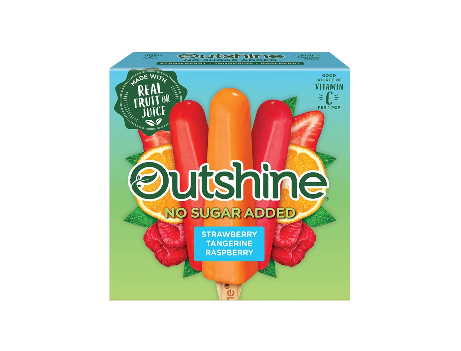 Every bite of an Outshine® No Sugar Added Mini Fruit Pop tastes like biting into a piece of ripe fruit. Made with real fruit and fruit juice, it's the snack that refreshes you from the inside out.