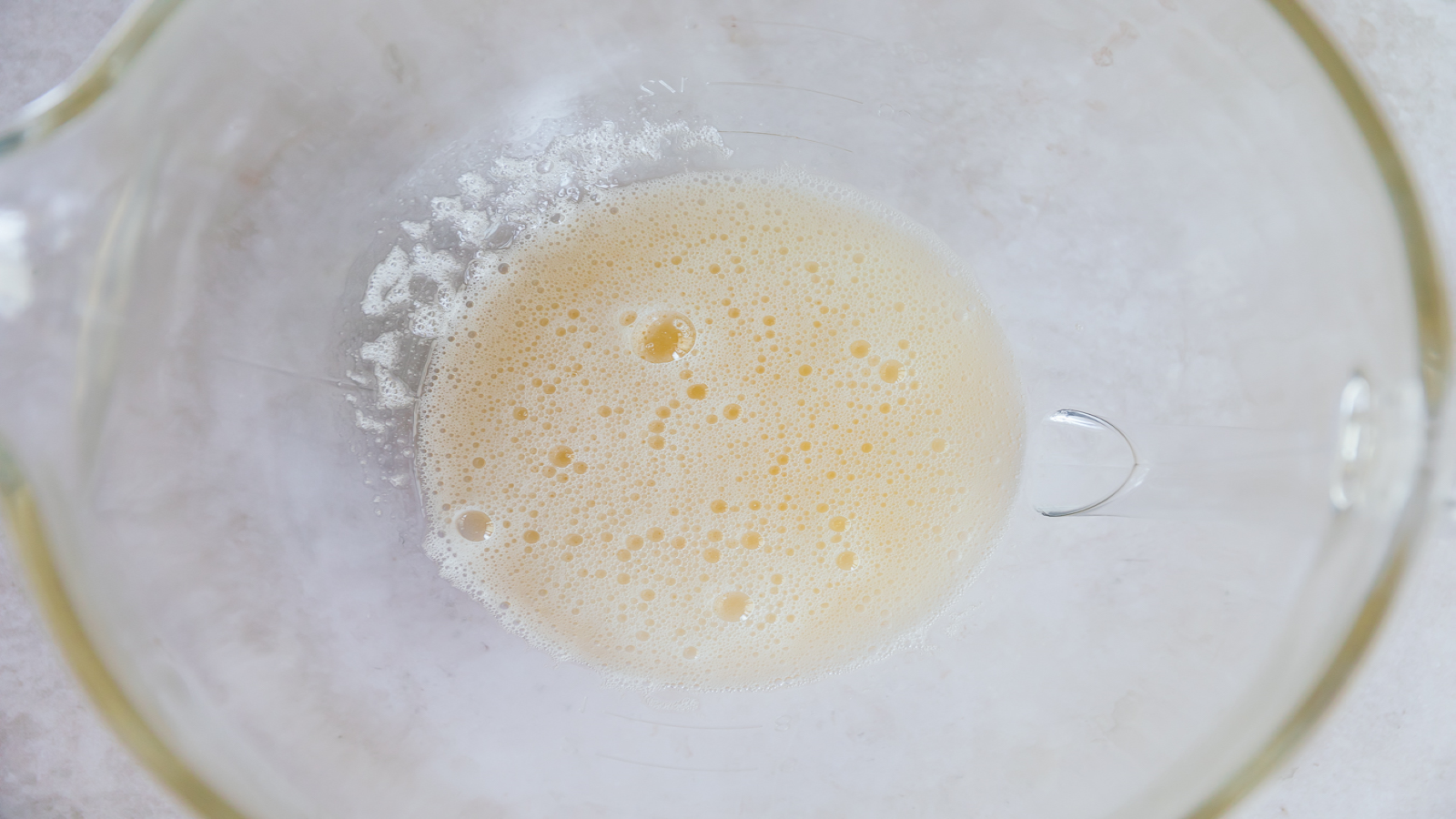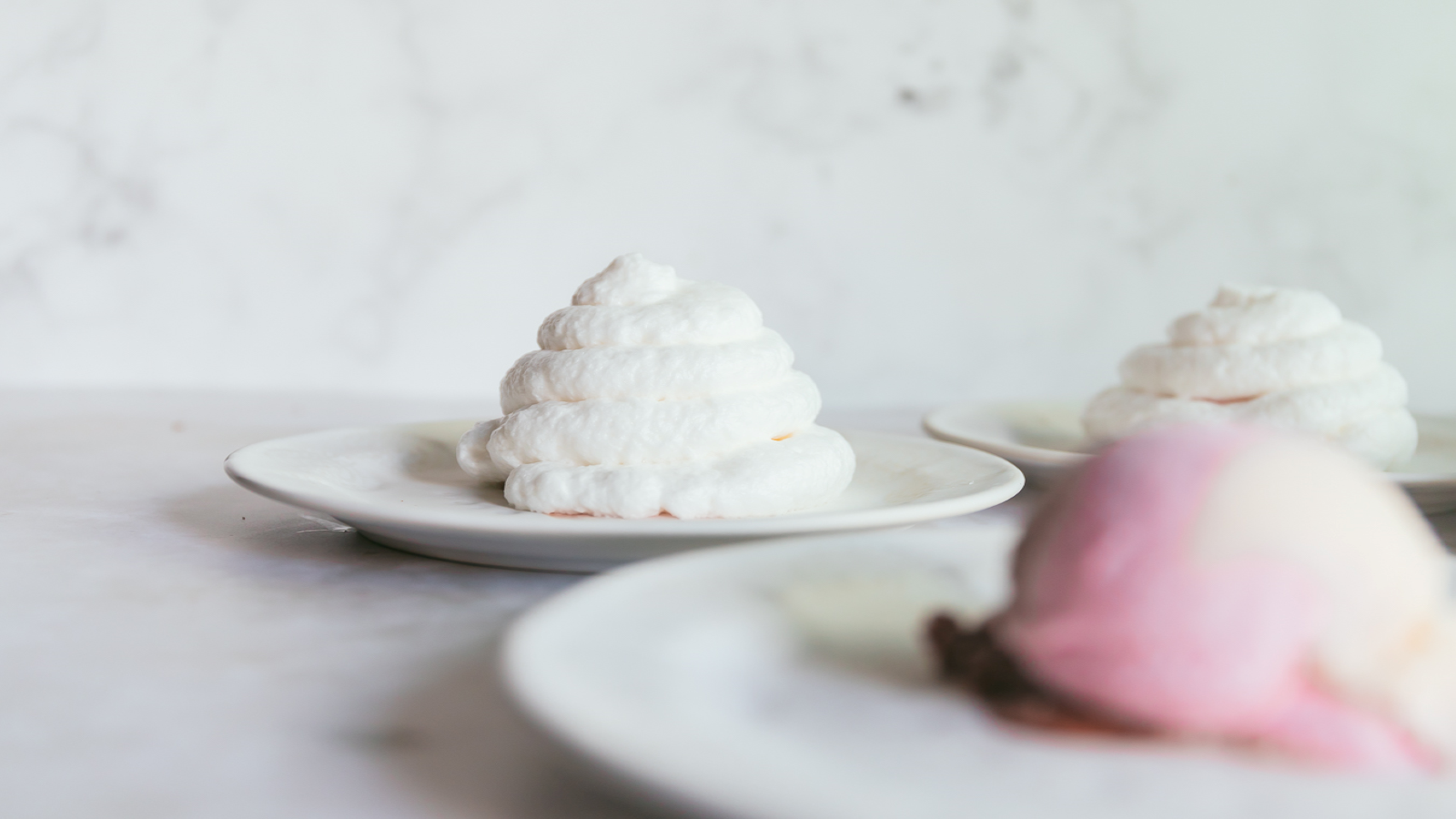 Once the sugar is dissolved, place the egg white mixture into a standing mixer and beat on low until foamy. Slowly turn up the speed until stiff peaks appear when you quickly dip the whisk in and out of the meringue.