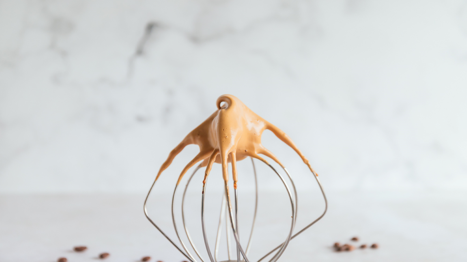 Pour the boiling water, instant coffee, and sugar into a standing mixer and beat on medium speed until frothy.