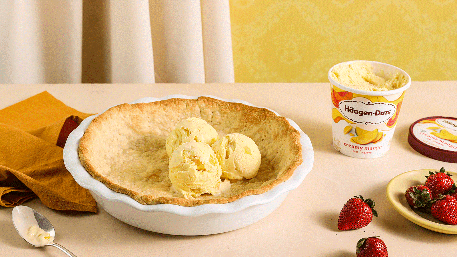 Press into a greased 9” tart pan and bake 9-10 minutes until lightly browned. Cool completely. Soften ice cream for at least 10 minutes. Spread ice cream over the crust and place into freezer for 30 minutes.