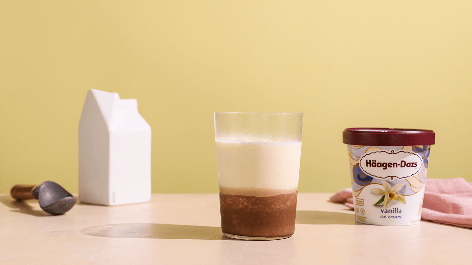 Make the vanilla flavor of the milkshake by blending 1/2 cup of Häagen-Dazs® Vanilla Ice Cream with 1/2 cup milk and 1/2 teaspoon of vanilla extract. Add to the semi-frozen first flavor glass.