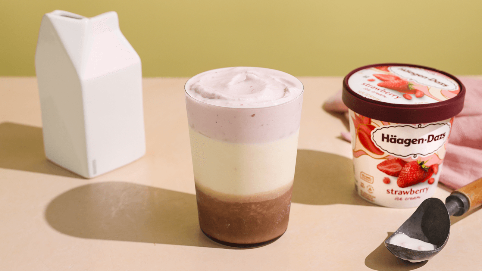 Make the strawberry flavor of the milkshake by blending 1/2 cup of Häagen-Dazs® Strawberry Ice Cream with 1/2 cup milk and remaining vanilla or almond extract.